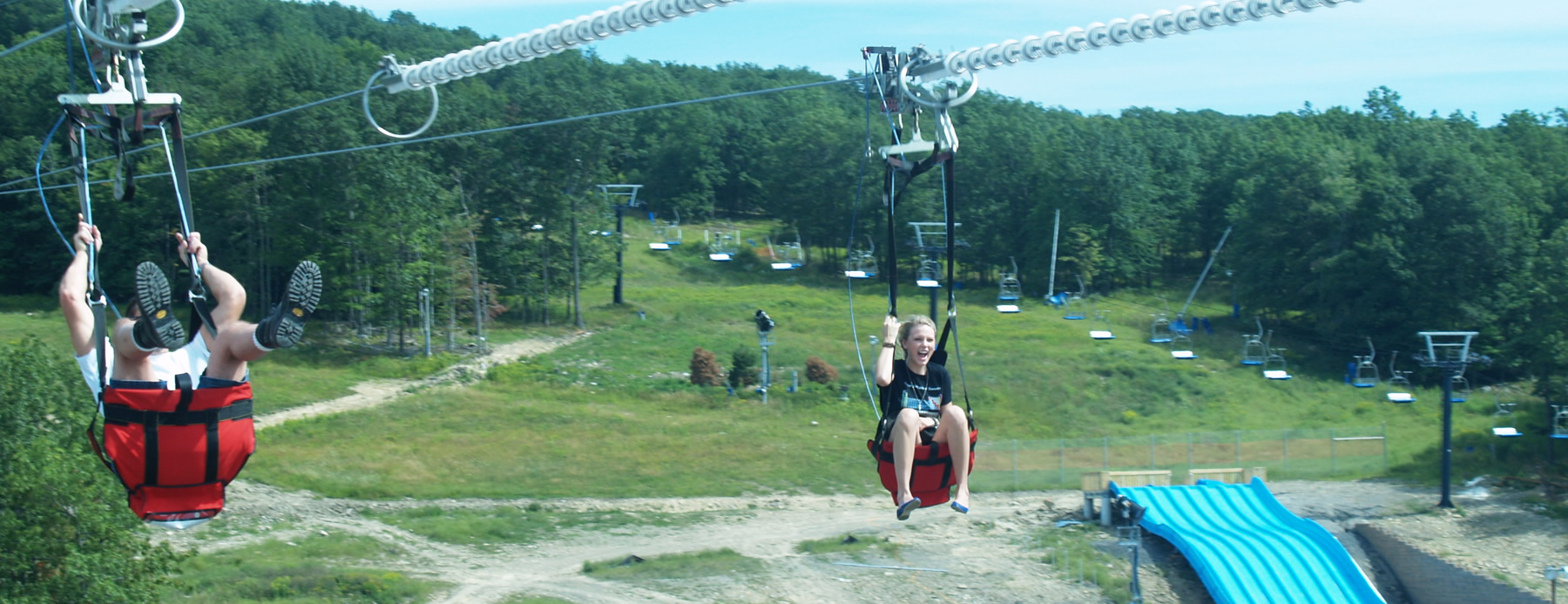 ZipRider® customers first ride up the Shuttle Lift located to the right of Montage Mountain’s Base Lodge. Atop the 50-foot tower, customers have a panoramic view of Scranton/Wilkes Barre and the surrounding wilderness. Our crew often encountered black bears around the top tower while installing the ZipRider®! In the wintertime, customers will ride directly over the Main Line ski run, Loki’s terrain park, and just skier’s left of Montage Mountain’s Superpipe at speeds up to 50 mph! During the summer season, riders will be flying directly above the Sno Cove Water Park near the base area. No matter the season, the ZipRider® is the main attraction in the middle of the action at Montage Mountain.