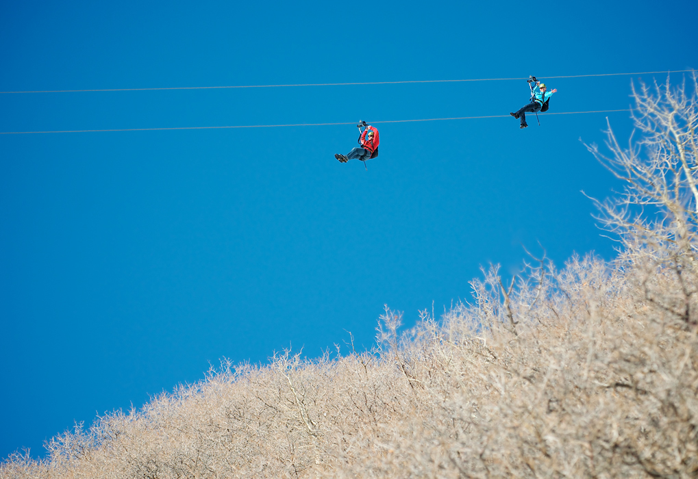 The Epic ZipTour® span starts with a chairlift ride on the Shortcut lift to the top of Lookout Ridge. The Shortcut lift ride offers great views of the other ZipTour® participants as they fly over the canyon between the Lookout Ridge and the Red Pine Lodge area. Once customers are ready to ride, they zip off the launch deck beside the Lookout Restaurant and fly several hundred feet above the ravine below! This ride is exhilarating, scenic, and carries participants over 2,111 feet to a landing nestled in the trees just above the Red Pine Lodge area.