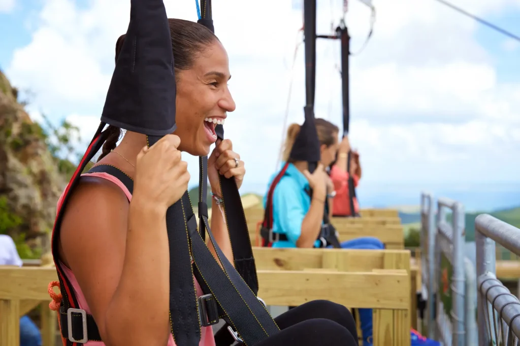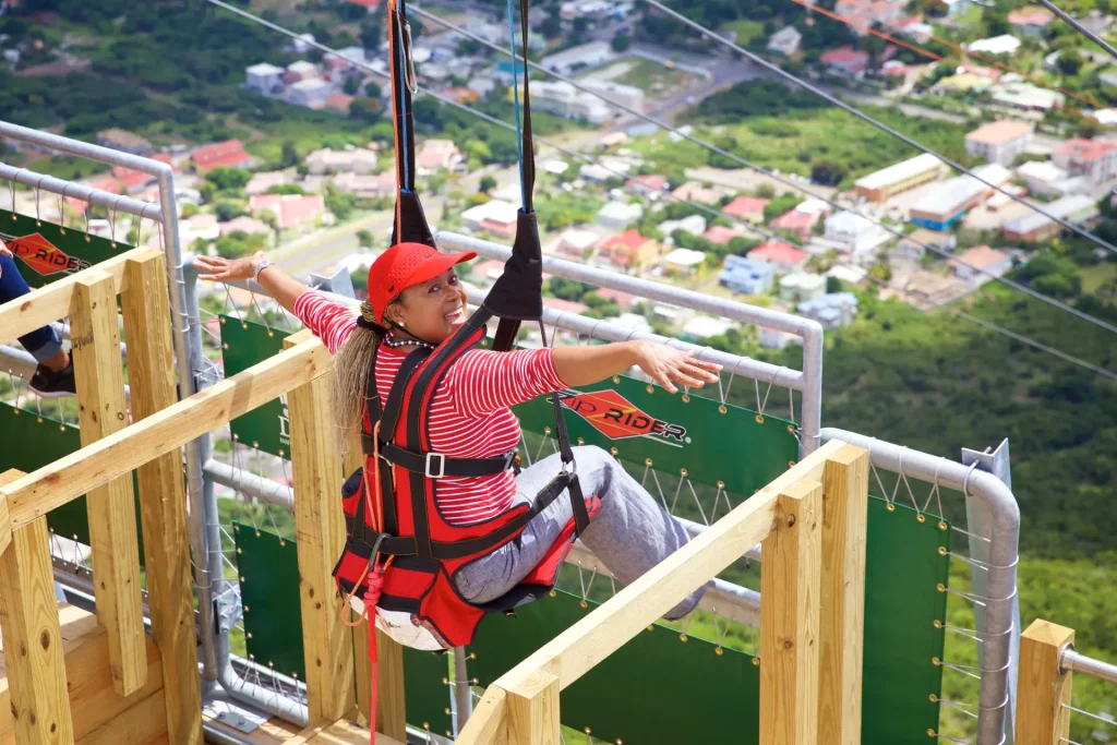 The Flying Dutchman is St. Maarten’s ultimate thrill ride and the world’s steepest zip line! Perched atop Sentry Hill at the Rockland Estate eco-park, the Flying Dutchman ZipRider® delivers an adrenaline-charged descent like no other. Riders are secured into our custom ZipRider® harness and launched down the steepest zip line on Earth—plunging 1,066 feet in elevation over a 2,600-foot flight path at a staggering 42% grade.