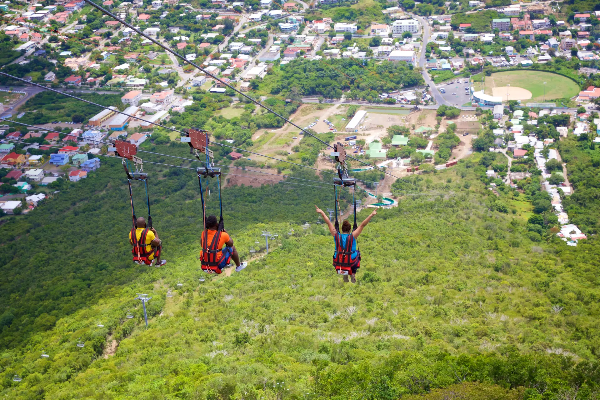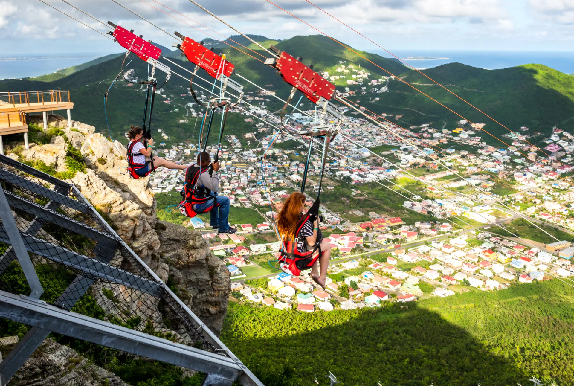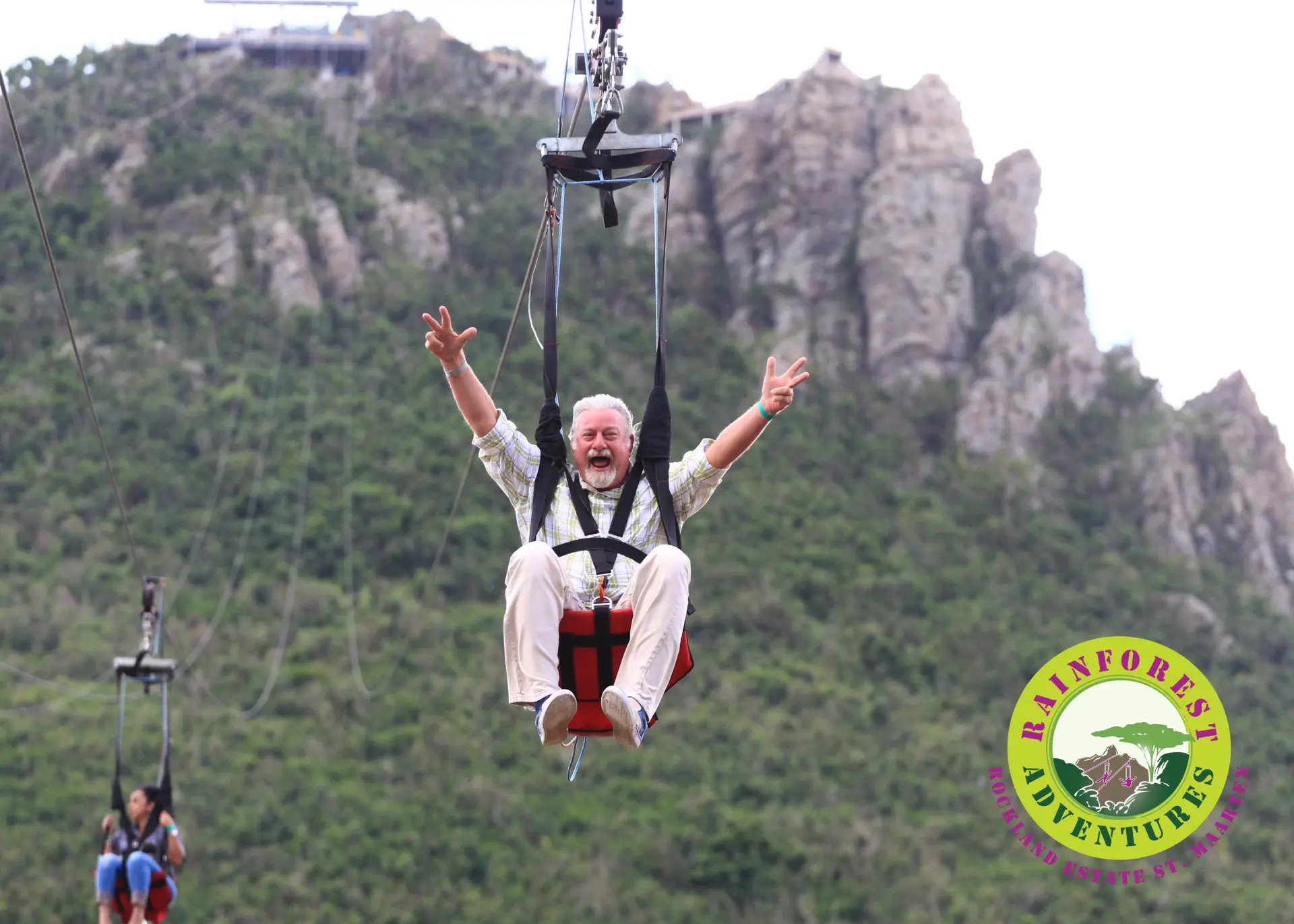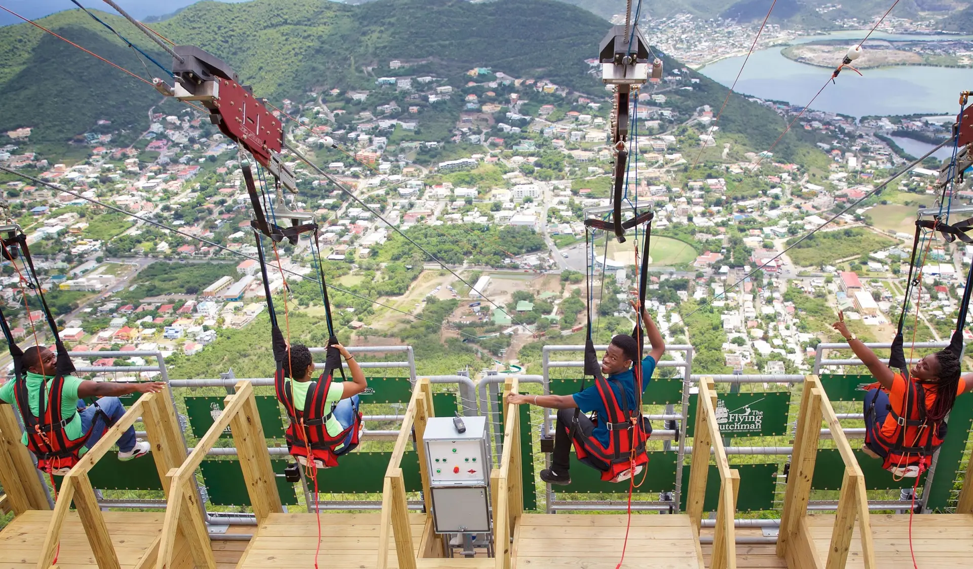 The Flying Dutchman is St. Maarten’s ultimate thrill ride and the world’s steepest zip line! Perched atop Sentry Hill at the Rockland Estate eco-park, the Flying Dutchman ZipRider® delivers an adrenaline-charged descent like no other. Riders are secured into our custom ZipRider® harness and launched down the steepest zip line on Earth—plunging 1,066 feet in elevation over a 2,600-foot flight path at a staggering 42% grade.