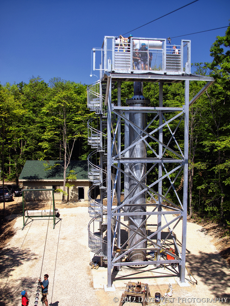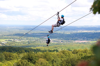 With the introduction of the ZipTour® Thunderbird Twin Zip, you can take your visit to Scenic Caves to new heights…literally! Once you’ve been outfitted with a harness and trolley, a short training session teaches you how to operate your custom ZipTour® trolley so you can control your own speed as you fly over the tree tops. Climb to the top of the 50 foot tower and take a moment to enjoy the panoramic view of the surrounding mountains and across the Georgian Bay to Christian Island and beyond.