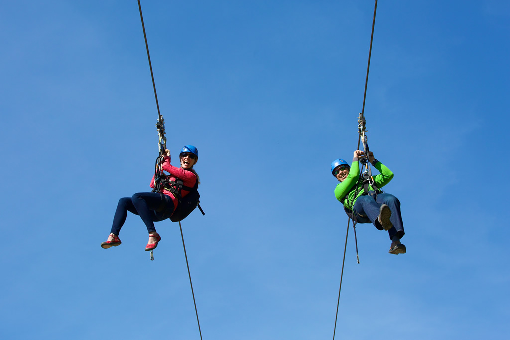 We gathered at the top of the final span of the Sundance ZipTour – the Outlaw span. This zip line is almost 4,000 ft. long and is one of the longest zip line spans in the country. This time, we decided to let it rip. We were racing together so fast, with the wind blowing the tears right out of our eyes! As we flew through the trees before the parking lot, we began to slow down. As we zipped over the parking lot, visitors below were shouting up to us and waving. “You have to do this!” we shouted back. We slowed down to a gentle stop at the landing deck and just looked at each other with bewilderment and grins from ear to ear. Can you believe what we just did??!!